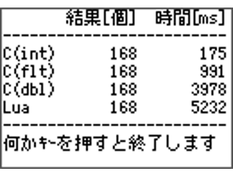 まず、前回の結果に較べて、C(int)の結果が少し早くなっていますが、これはLuaとは関係ありません。